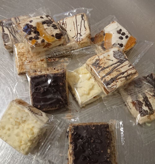 Quaranta nougatbrokken, ongeveer 10 gram per stuk. Diverse soorten apart verpakt.