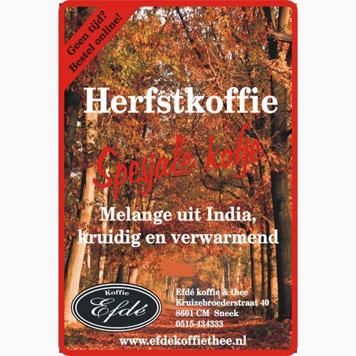 Onze speciale blend voor de herfst. Kruidig en verwarmend. Blend van Toradja, India Monsooned Malabar en Nicaragua. Tijdelijk leverbaar! UITLOPEND!