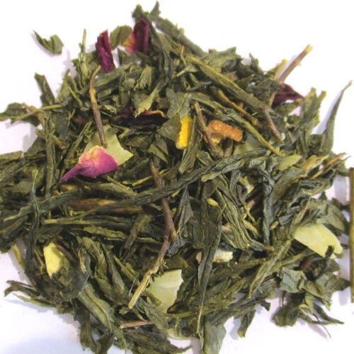 Sencha met kaneel, sinaasappel, amandelen, rozenblaadjes, kruidnagel en aroma. Nieuw! Nu met duurzaam verbouwde groene thee.