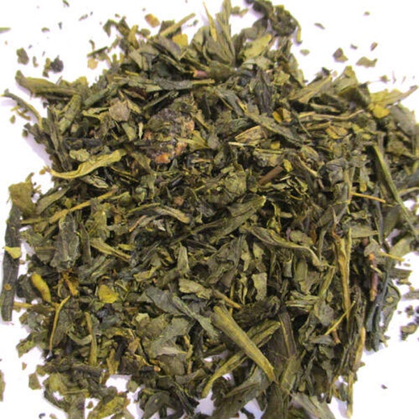 Lentethee! Groene thee met stukjes perzik en aroma.