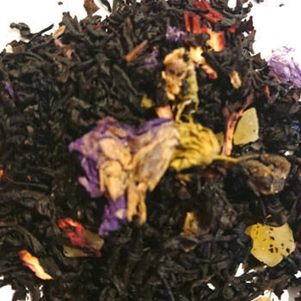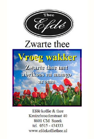 Lentethee! Zwarte thee met o.a. mango- en abrikoosstukjes, krenten, rozen- en kaasjeskruidbloesem en aroma
